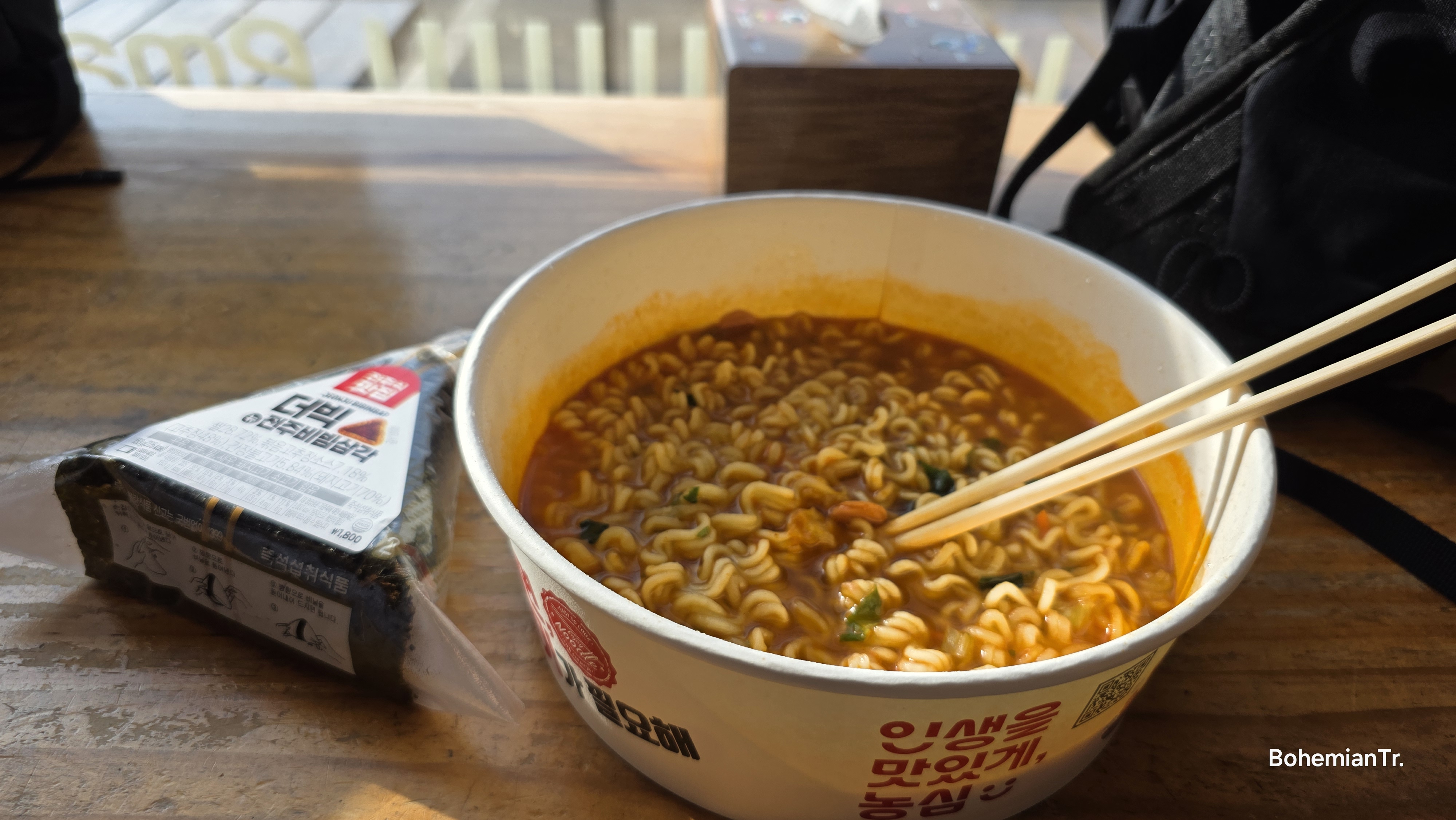 한강라면과 삼각김밥으로 아침식사..